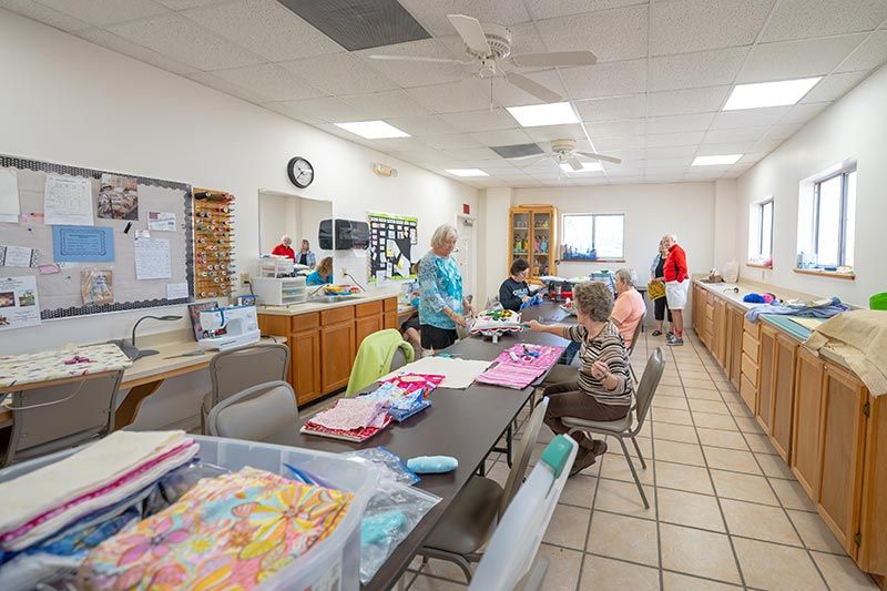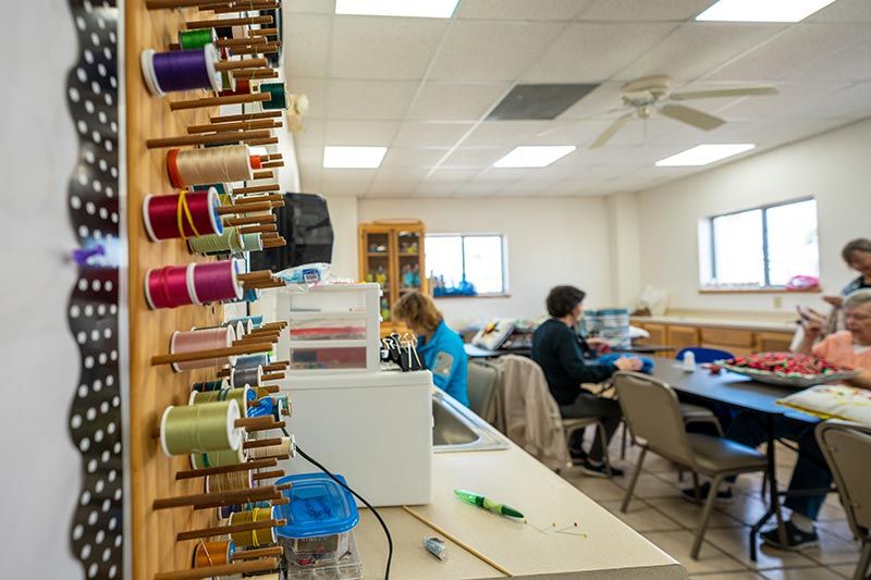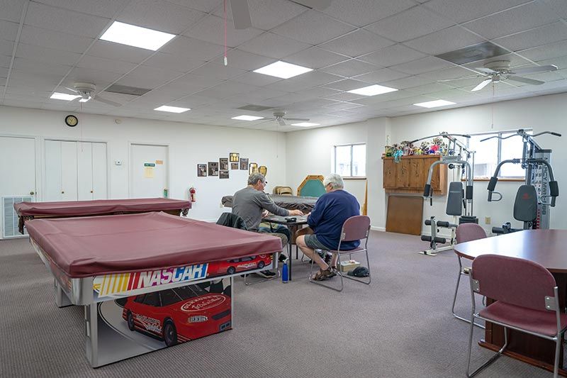 Our office and activities hall offers a common area for live music, entertainment, and meals. The hall also has a library, crafting room, game rooms, fitness room, and conference room.