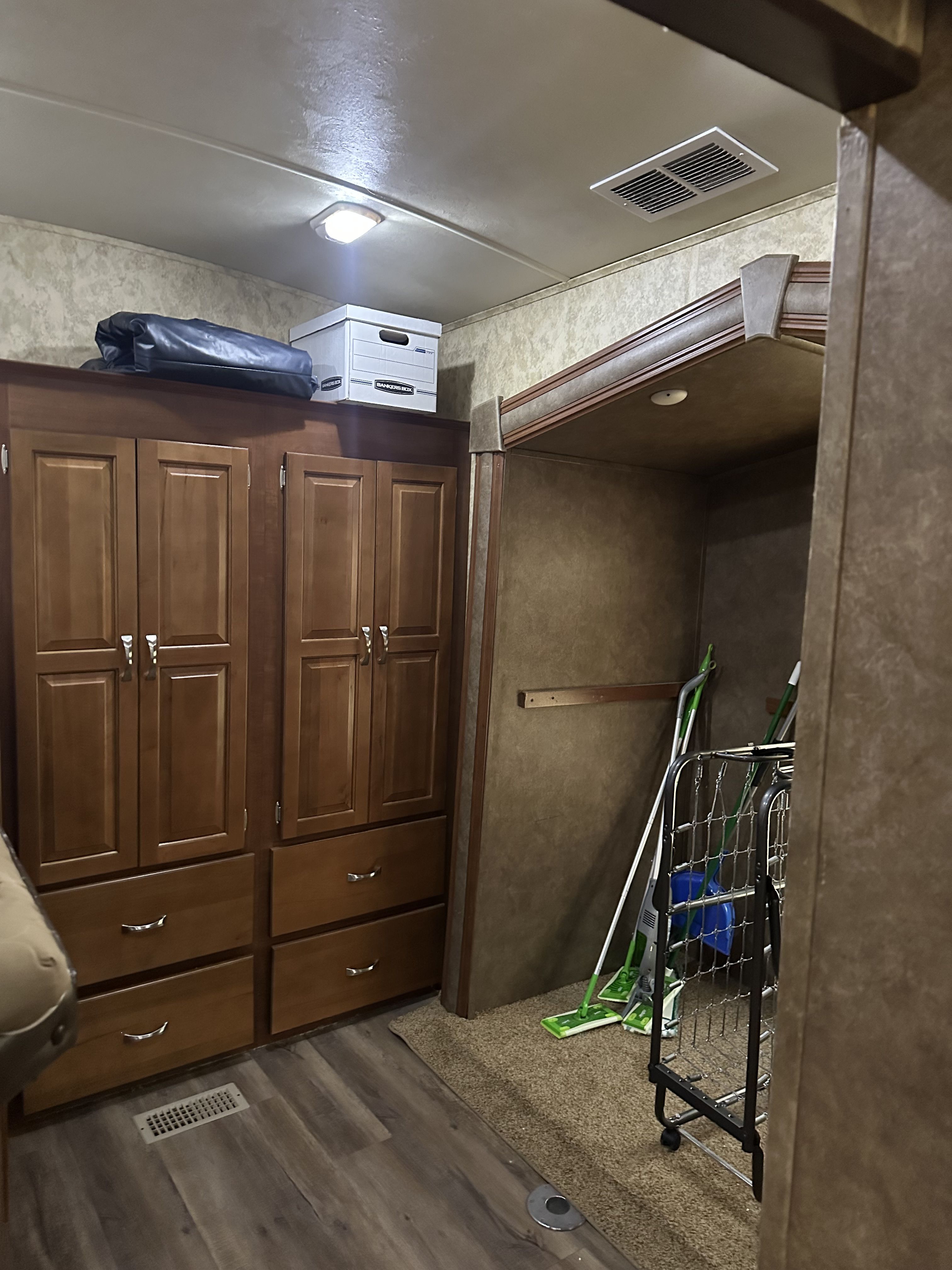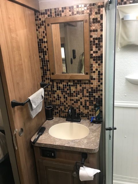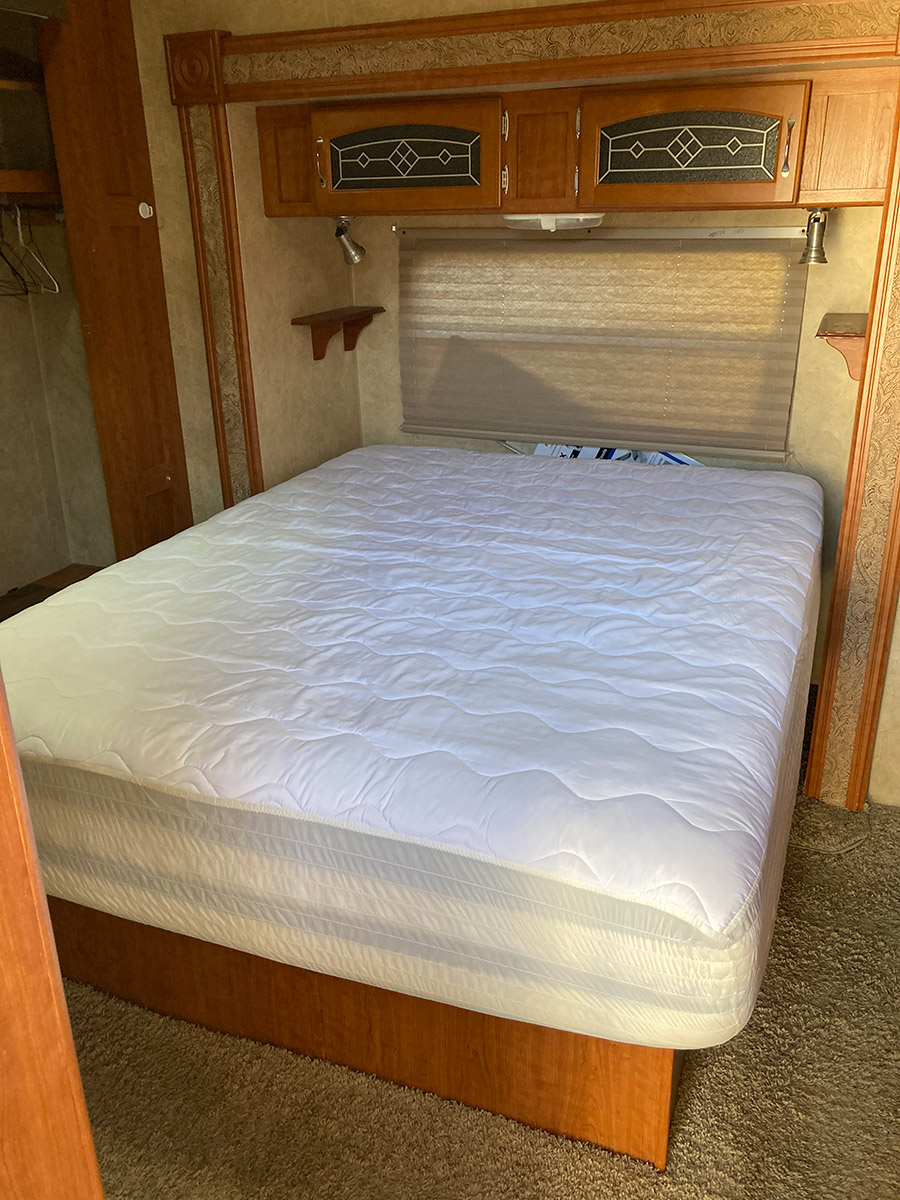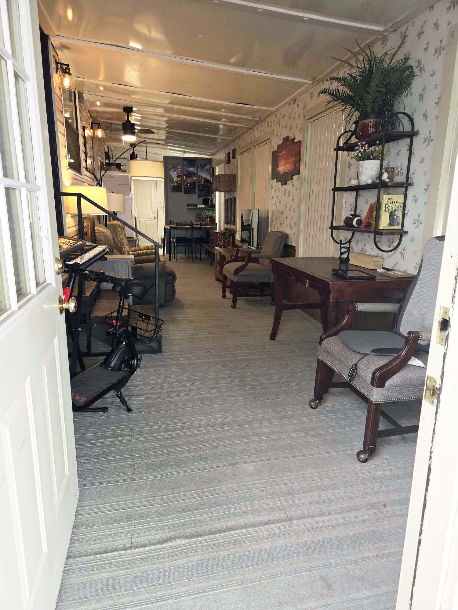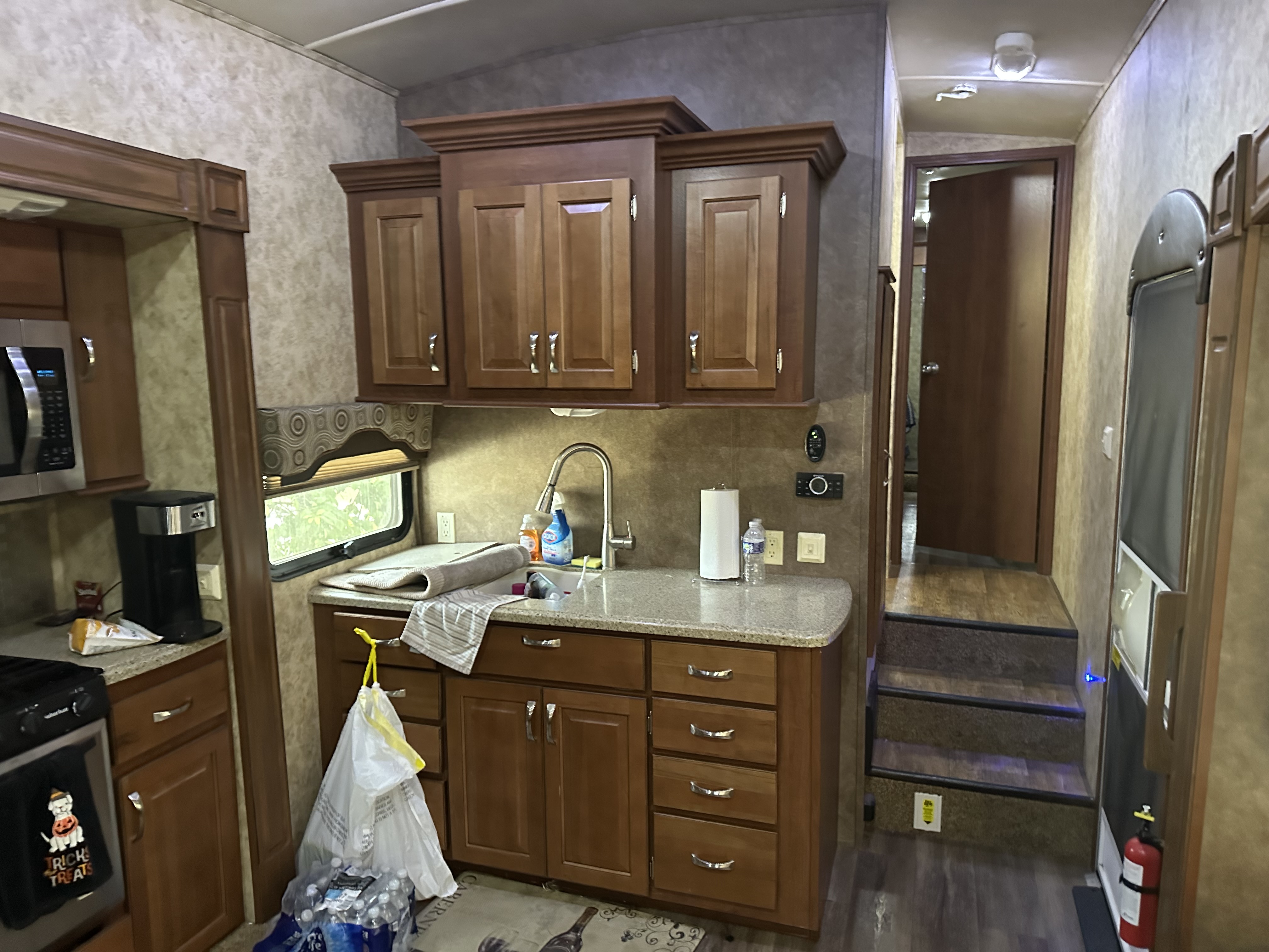 RV lot for sale. 2018 Flagstaff RV furnished with gas range, microwave, fridge, freezer, central air, and gas furnace. 1 bedroom and 1 bath.