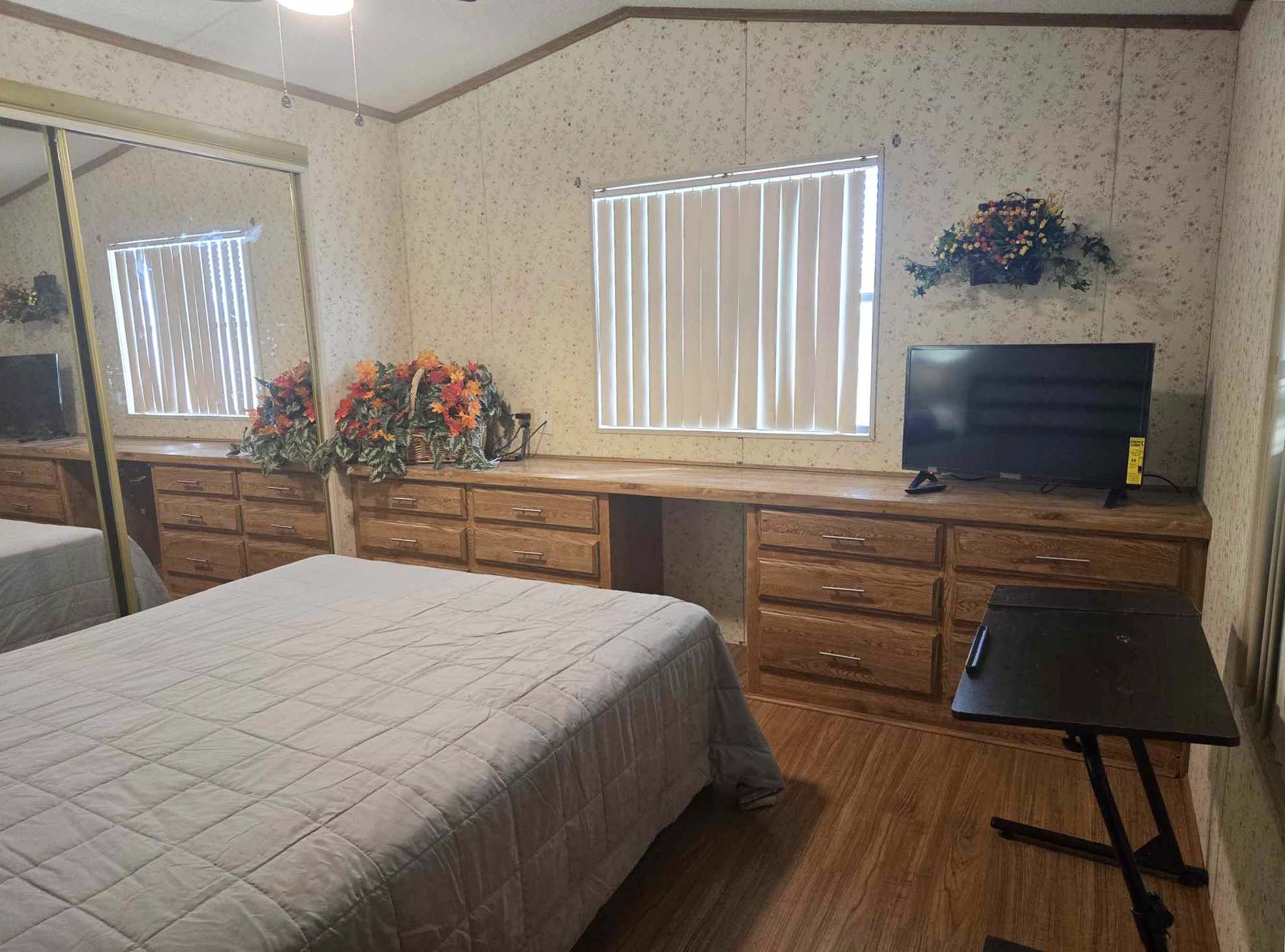 2007, 16x68 Skyline Mobile. 2 bedroom, 2 bath with laundry room. Furnished with electric range, dishwasher, fridge, central air, microwave, disposal, electric furnace, vinyl siding, and covered patio. New washer and dryer in 2026, new bed and nightstands, and a shed refrigerator. Rear utility shed (5'3') and shed (11'x10')